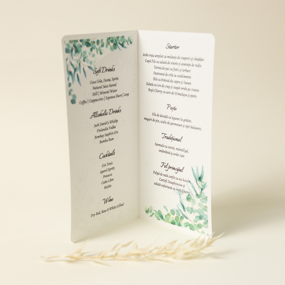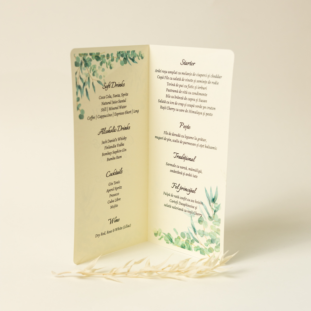 Pe coperta meniului se poate trece și numărul mesei pentru a elibera spațiul în cazul în care nu doriți numere separate.