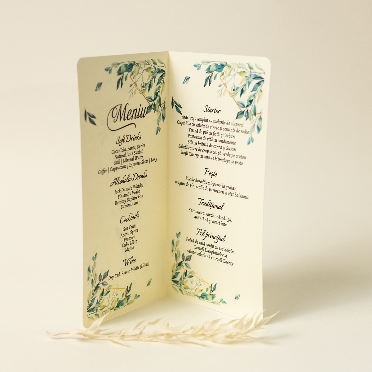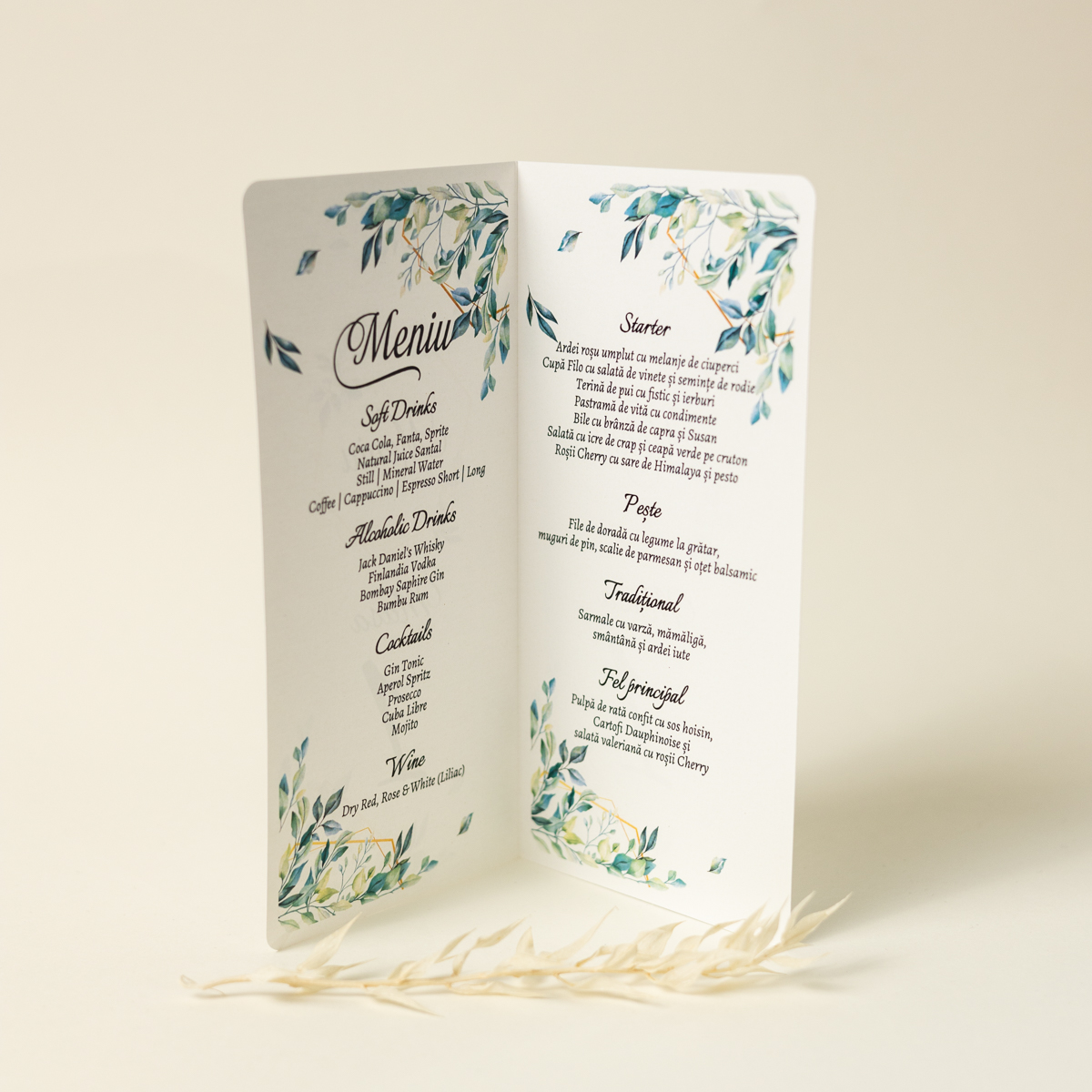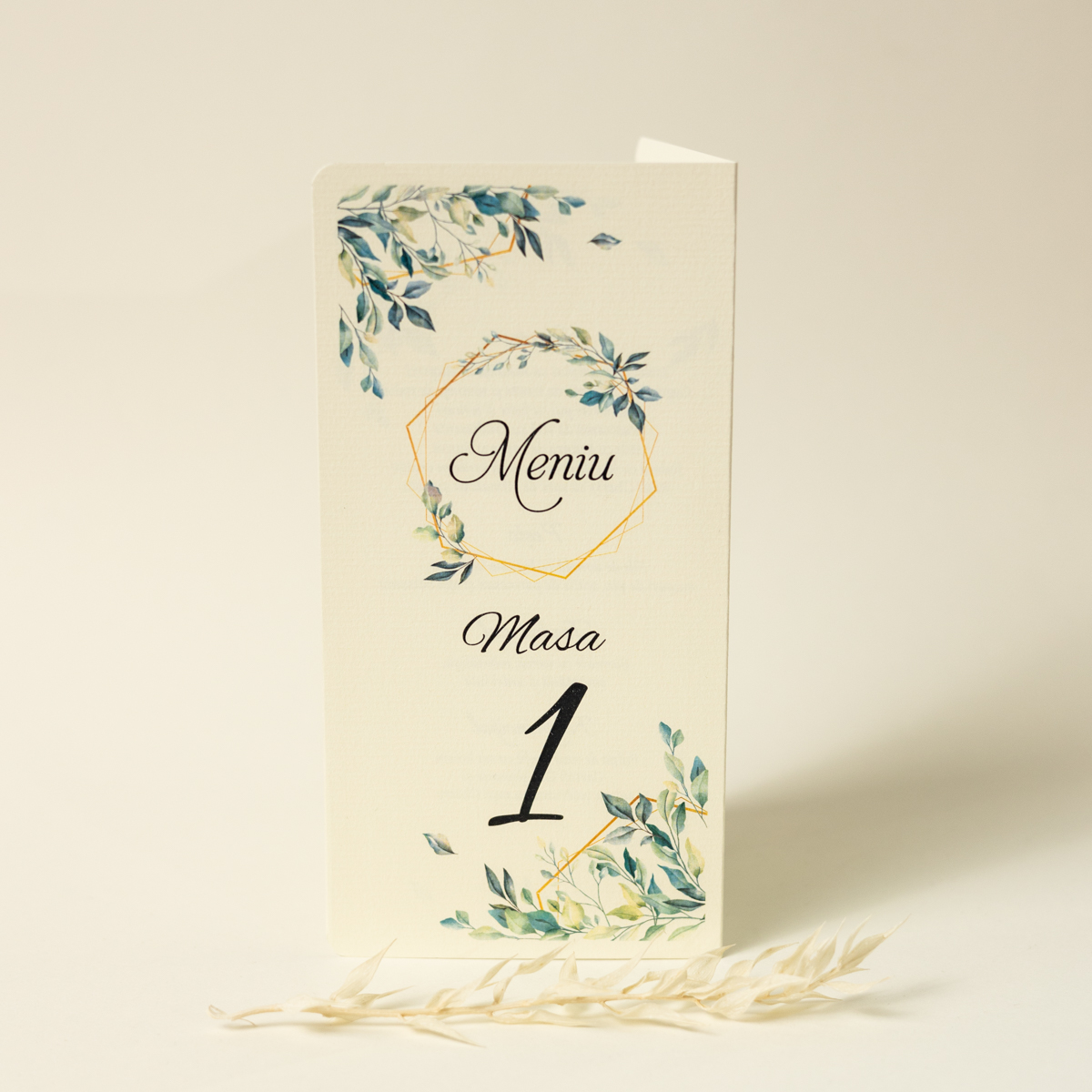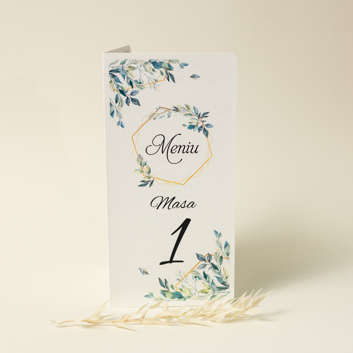 Pe coperta meniului se poate trece și numărul mesei pentru a elibera spațiul în cazul în care nu doriți numere separate.
