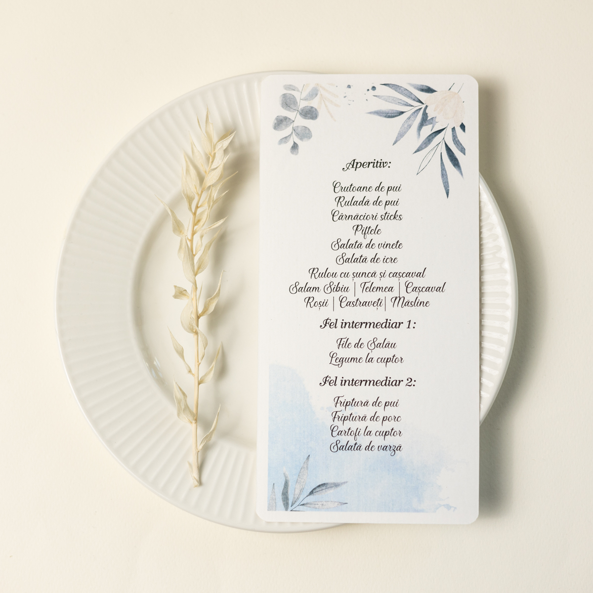 Dupa cum ii spune si numele, acest tip de meniu se aseaza in sau langa farfurie si nu poate fi folosit ca numar de masa.