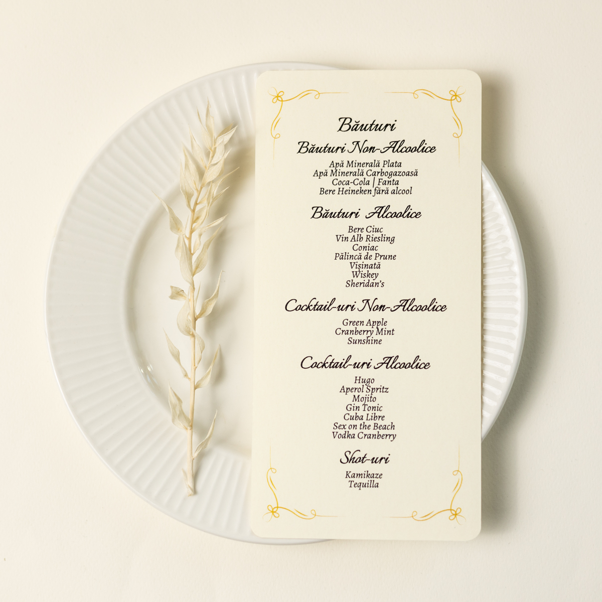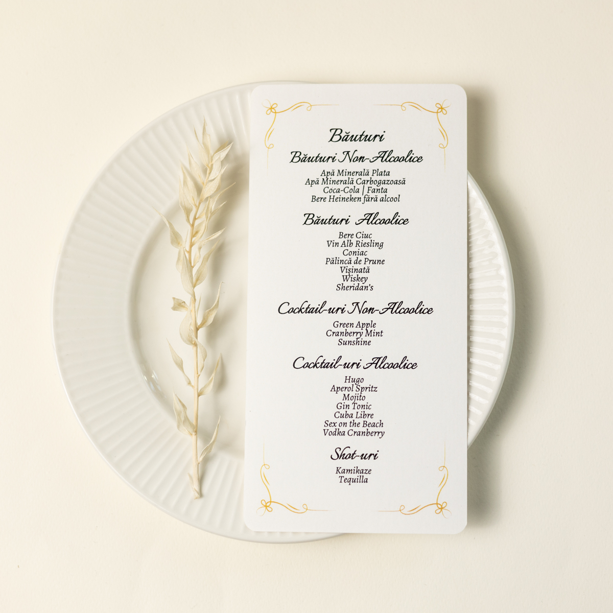 Se printează pe carton texturat alb sau crem, în funcție de preferințe.