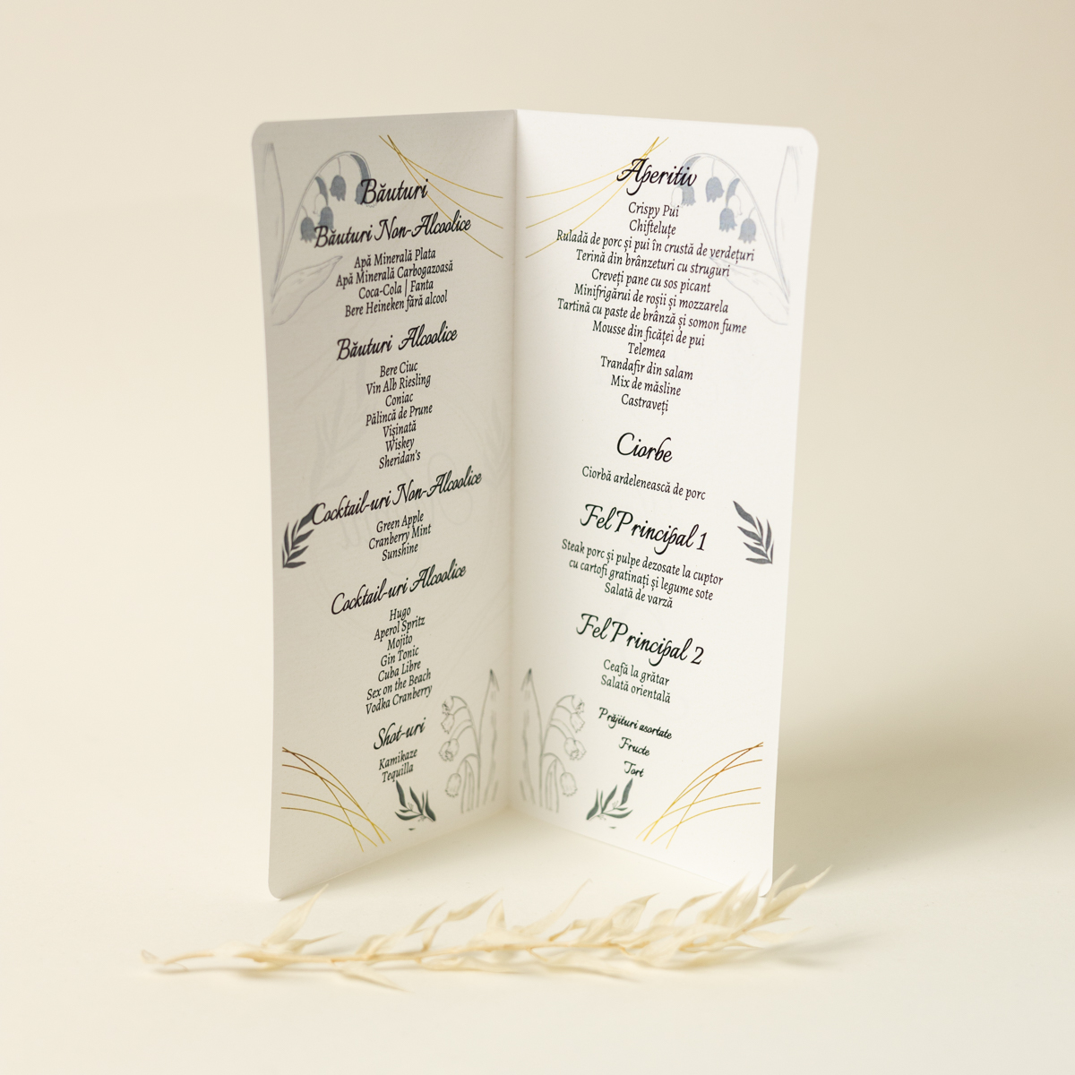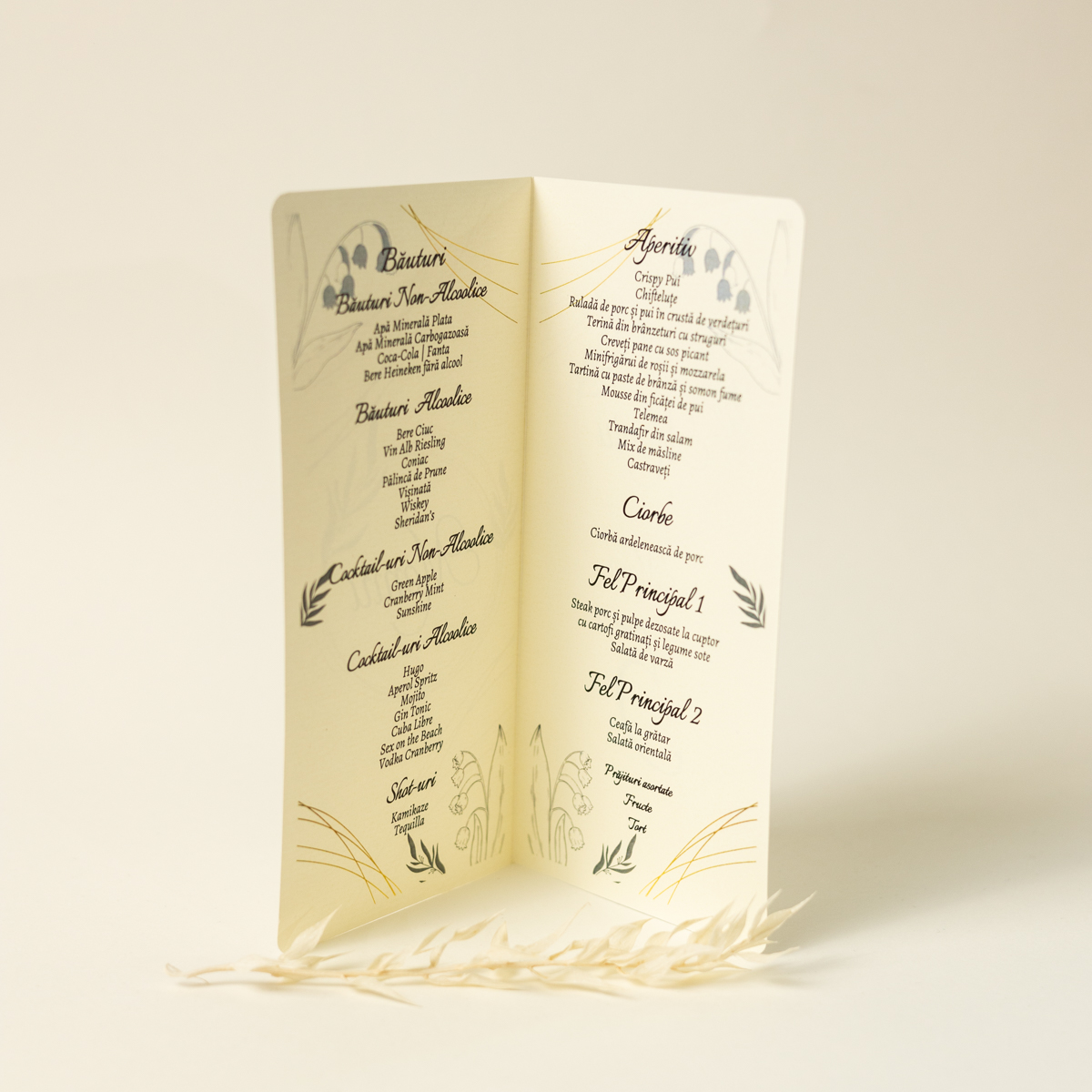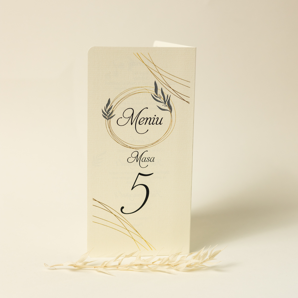 Pe coperta meniului se poate trece și numărul mesei pentru a elibera spațiul în cazul în care nu doriți numere separate.