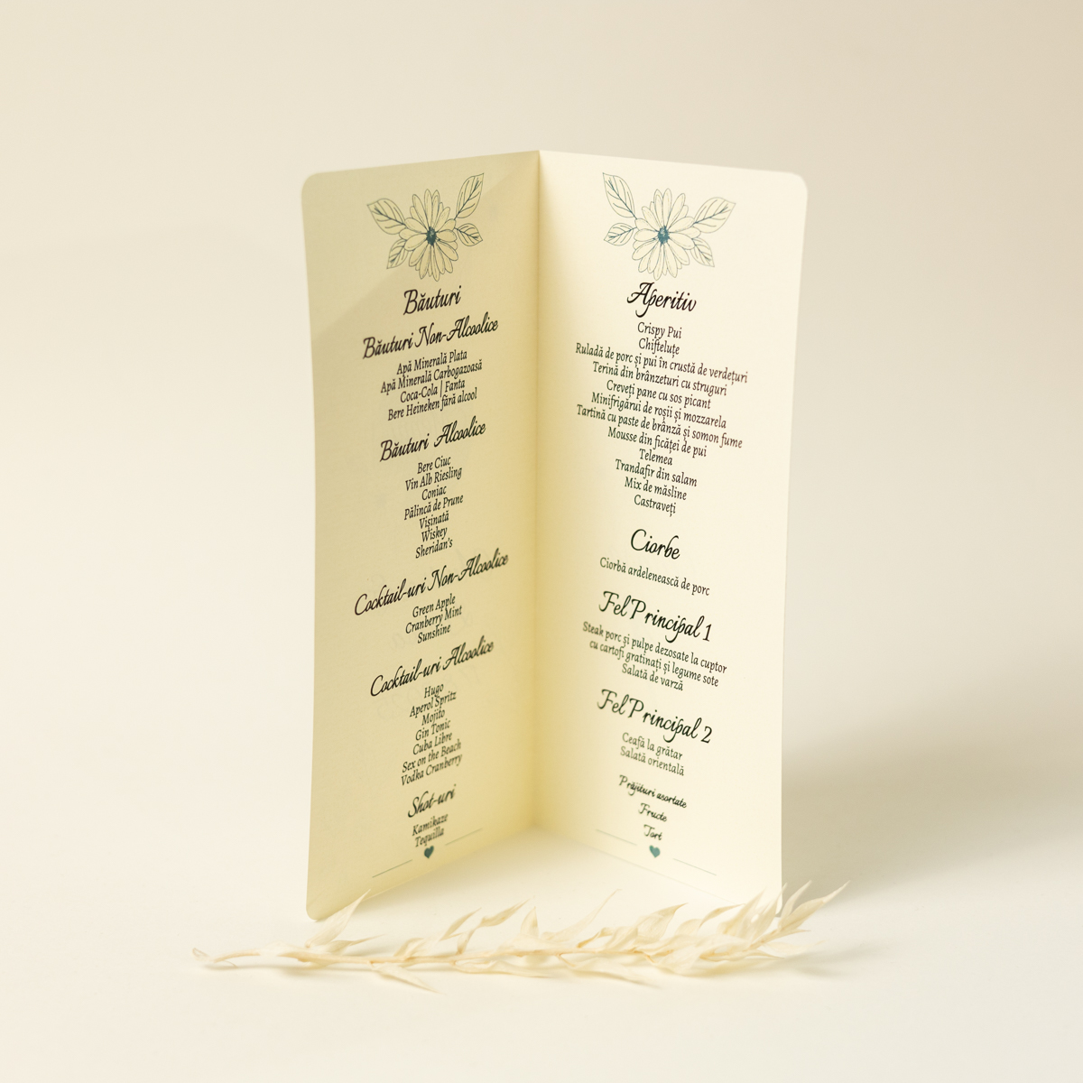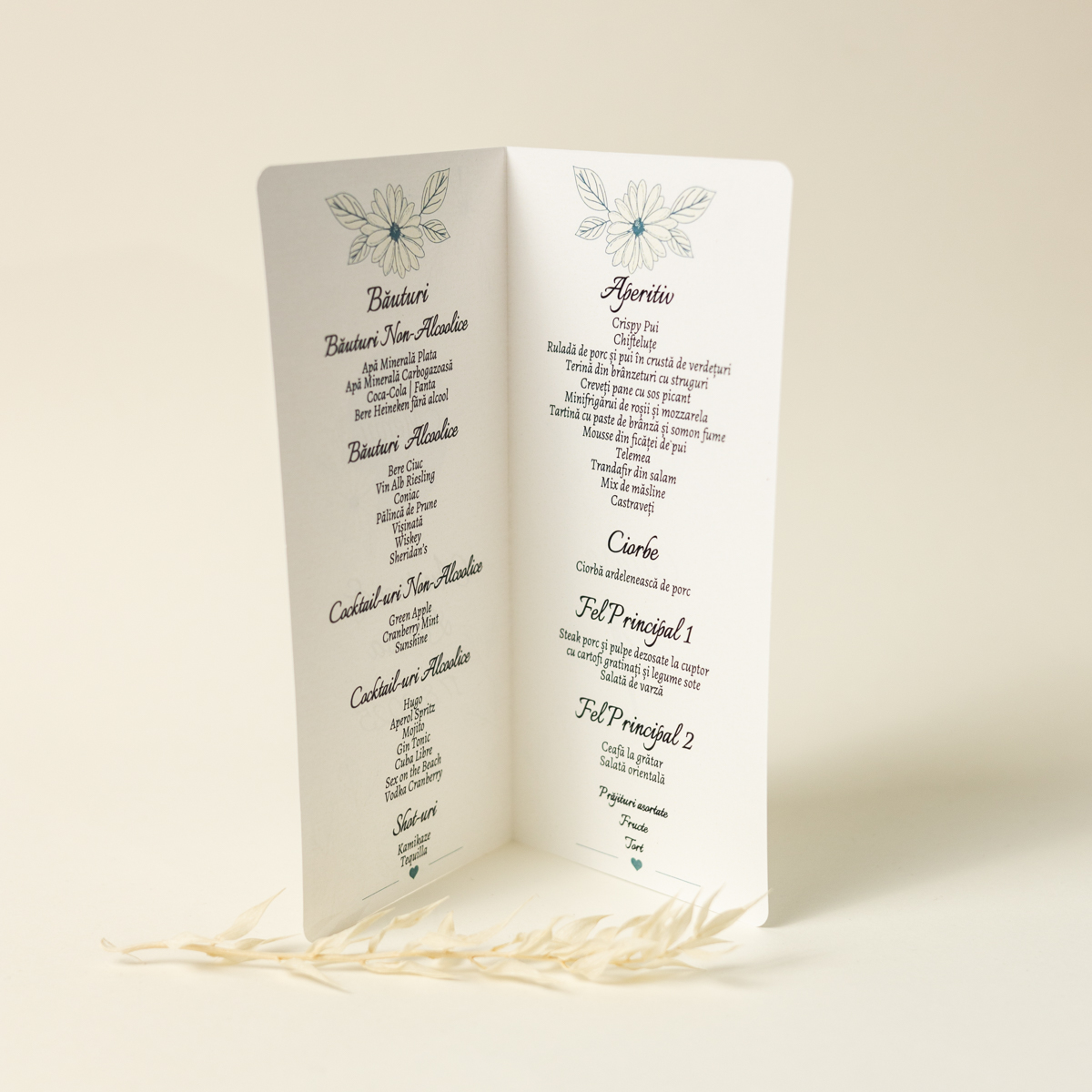 Pe coperta meniului se poate trece și numărul mesei pentru a elibera spațiul în cazul în care nu doriți numere separate.