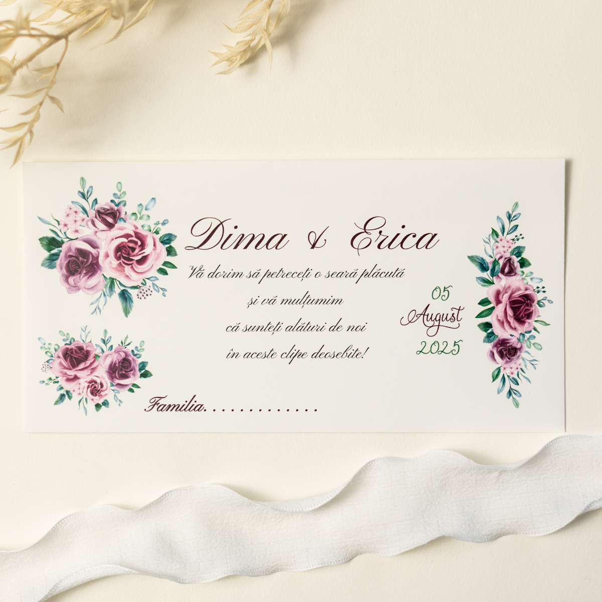 - • În maxim 2 zile lucrătoare o să primiți macheta textului invitației pe WhatsApp, pe numărul din comandă pentru verificare.