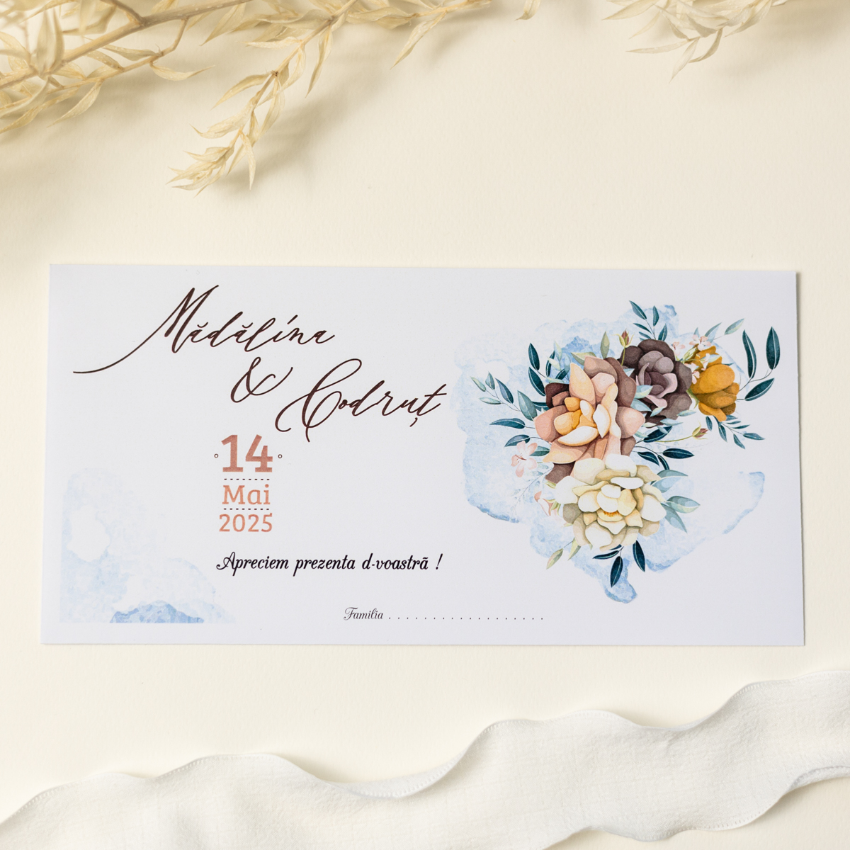 - • În maxim 2 zile lucrătoare o să primiți macheta textului invitației pe WhatsApp, pe numărul din comandă pentru verificare.