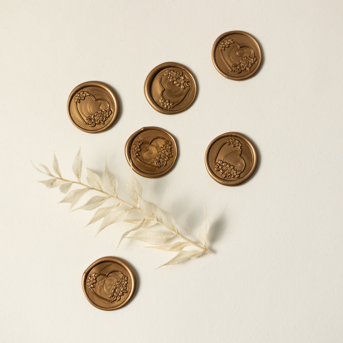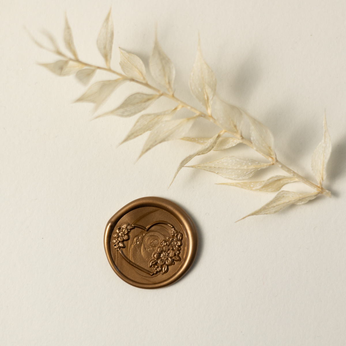 Sigiliu de ceară pentru invitații de nuntă, rotund, model inimă.